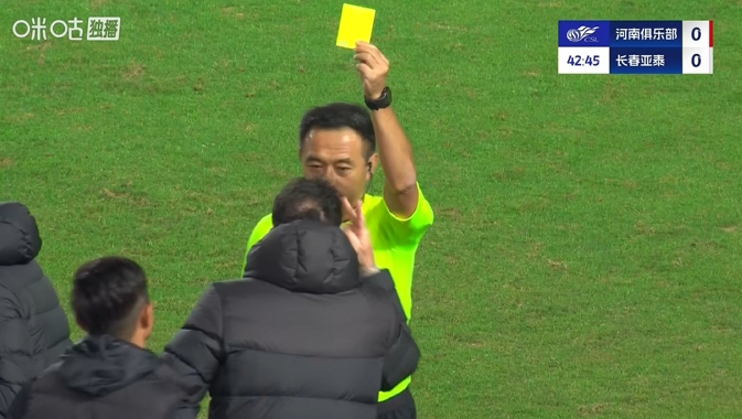 暴怒!河南进攻明显越位,但边裁未举旗变角球,亚泰主帅不满染黄