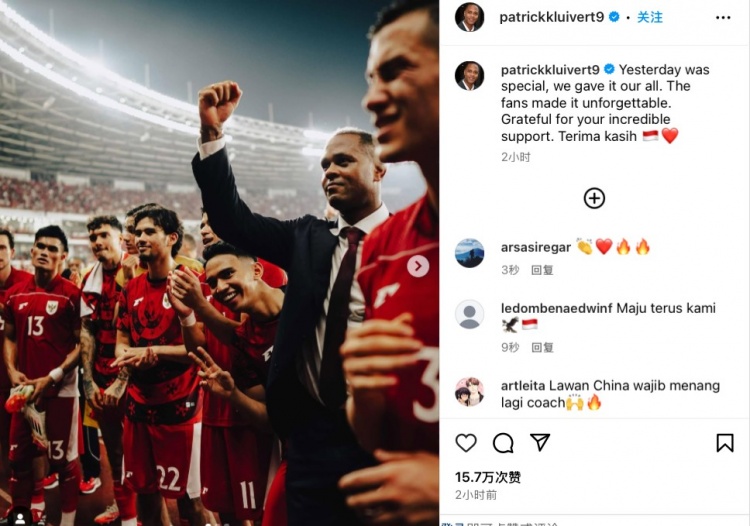今日克鲁伊维特更新社媒,晒出了全队围在一起庆祝胜利的照片,并配文写道:“昨天是特别的一天,我们在场上倾尽所有,球迷们的加油助威让这晚更加难忘。谢谢你们令人振奋的支持,感谢(印尼语)。”